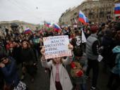 В Петербурге участники всероссийской акции "Он нам не царь" вышли на Невский проспект и частично перекрыли проезжую часть. Колонна двинулась прямо по проезжей части. Подробнее