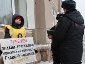 У административного здания на Театральной площади Челябинска, где находится мэрия и городская дума, 19 ноября общественность требовала провести трансляцию выборов мэра. Но гордума управилась с выборами за несколько минут. Подробнее