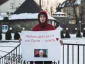 Во время суда над бастовавшим избирателем активист принес "валентинку" режиму Путина