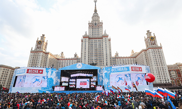 Сам митинг-концерт начался в 18.00. У сцены перед главным зданием МГУ собралось множество москвичей и гостей столицы. В мероприятии приняли участие депутаты Госдумы.