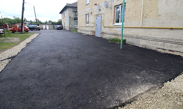 Еще одна территория, где ведутся работы – дворы по адресам ул. Городская, 40А и ул. Лаврова, 93, 95, 97. Чтобы дорога долго сохраняла свои качества, нужно грамотно организовать отвод воды. Помимо двора здесь будет заасфальтировано 3 выезда на дорогу. Всего асфальт уложат на площади 1600 кв. метров.