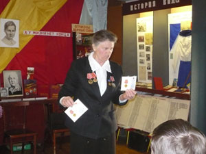 Со вступительным словом к собравшимся обратилась руководитель музея ЛА. Шебунова. Она подробно рассказала о героическом вкладе Тамбовщины в дело разгрома фашисткой Германии, о великих сынах и дочерях Отечества, которые, не щадя своих жизней, защитили родной край от разорения и порабощения. Большое внимание Лидия Алексеевна уделила биографии Зои Космодемьянской, рассказала о родных и близких героини, о тех людях, которые внесли немалый вклад в дело исторического осмысления и сбора материалов о жизни и подвиге нашей землячки.