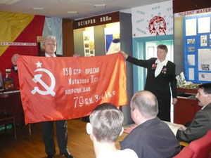 Секретарь Тамбовского обкома КПРФ А.И. Жидков, от всего сердца поблагодарив создателей музея за их бескорыстный труд, от имени коммунистов области вручил Л.А. Шебуновой копию Знамени Победы - легендарного алого стяга, который победоносно реял над рейхстагом в далеком 1945 году. Также Андрей Игоревич передал в фонд музея ценные книги, энциклопедии и другие подарки.