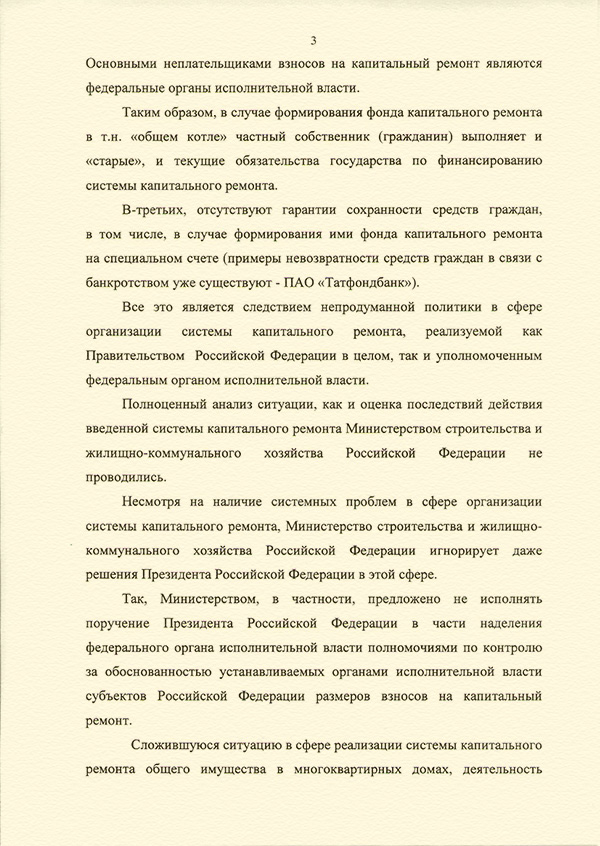 Авторы обращения считают неудовлетворительной работу в этой сфере Правительства РФ и Министерства строительства и жилищно-коммунального хозяйства.