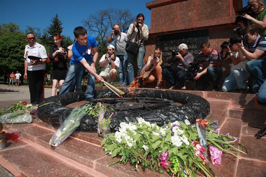 9 Мая огонь из Трептов-парка на легендарной «Победе» отправляется дальше, в соседние шахтерские города Ждановку и Кировское.