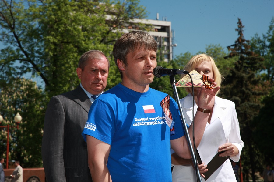«Это очень символично, что мы видим «Победу», которая много лет спустя прошла дорогами Победы. Вот уже 68-й мирный май пришел к нам. Спасибо за реализованную идею, за те пять тысяч победных километров Макеевка – Берлин – Макеевка. Мы будем помнить вечно шахтеров-героев, которые отдали жизни за освобождение нашей родины и всех, кто положил свои жизни на алтарь нашей Великой Победы. Слава народу-победителю, вечная память героям!» - сказал Андрей Шишацкий, приветствуя участников митинга.