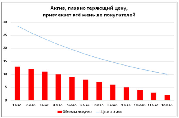 Мысли потенциальных покупателей понятны: зачем торопиться, ведь цены падают. А те, кто такой актив имеют, думают, что от актива надо избавляться, пока цены не упали еще ниже.