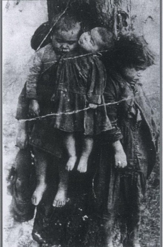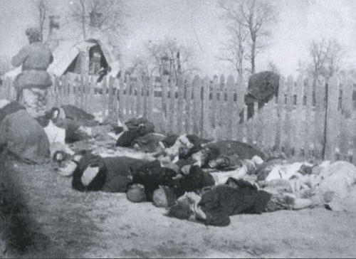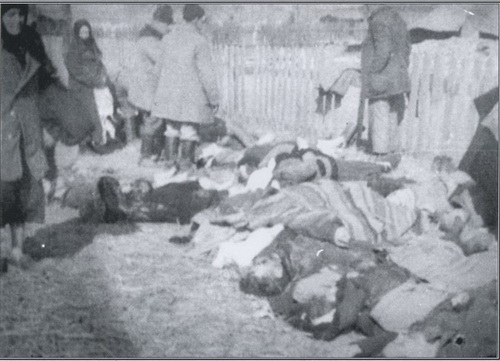 Фото 1 - ЗАМОЙЩИЗНА (ZAMOJSZCZYZNA), воеводство лубелское (woj. lubelskie), 1942. Трупы замёрзших неизвестных польских детей - совместная работа гитлеровцев и украинских шовинистов вследствие тщательного выполнения тайного плана 'Generalplan Ost (GPO'), а также 'Ukraineaktion'. Фотограф неизвестен. (za: Jacek E. Wilczur, Nie przeminie z wiatrem: Ojszyzna nie udziela urlop?w), Warszawa 1997, Agencja Wydawnicza CB Andrzej Zasieczny, s. 199).