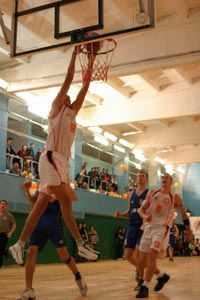 “Святом баскетболу” від спортивного клубу “Черкаси” розпочався 9 жовтня домашній тур 14-го Чемпіонату України з баскетболу серед команд вищої ліги для наших “Черкаських мавп” і їхніх столичних суперників “КНЕУ-2000”, команди Київського Національного Економічного Університету. І “Мавпи”, отримавши потужний заряд гарячої глядацької підтримки, довели, що не дарма одержали таку назву, — на їхньому рахунку нині перші у сезоні, просто оглушливі перемоги: 117:72 і 94:70. Можливо, нашим гравцям допоміг гімн команди, вперше виконаний відомим у місті співаком і композитором Олександром Недобором перед початком першої гри? А якщо серйозно, то головний тренер команди Анатолій Федоренко знайшов для своїх підопічних правильний підхід до досить сильного суперника. Гра “Черкаських мавп” була вибудована на агресивному захисті. І під кінець першої гри черкащани, відчуваючи, що перемога вже за ними, з насолодою “працювали” на публіку у стилі НБА: спершу Олексій Цимбал (має ж капітан показувати приклад), а потім Максим Чміль ефектно виконали слем-данк (кидок зверху) і, зависаючи на кільці киян, кілька разів зривали овації. Хоча прискіпливі черкаські ветерани баскетболу вирішили, що хто перший — той і герой, і кращим гравцем за результатами двох ігор одностайно визнали капітана “Черкаських мавп” Олексія Цимбала. Так що номер “13”, під яким капітан команди вийшов на ігровий майданчик, виявився для нього щасливим. Свою нагороду Олексій одержав у неділю, 10 жовтня.