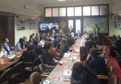 Что сегодня волнует молодых политиков в нашей стране и за ее пределами? Как в России, так и на Западе многие парламентарии, несмотря на санкции и давление со стороны СМИ, выступают за развитие торгово-экономических связей между государствами и налаживание добрососедских отношений. Об этом молодые парламентарии говорили в среду в ходе встречи во фракции КПРФ в Государственной Думе. Общение с гостями открыл своим выступлением Председателем ЦК партии Г.А. Зюганов. В продолжение встречи его заместитель Д.Г. Новиков ответил на вопросы присутствующих.