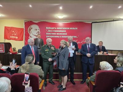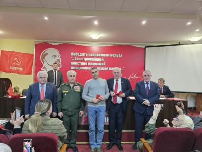В этот знаменательный день делегация во главе с первым заместителем председателя Комитета ГД по делам СНГ, евразийской интеграции и связям с соотечественниками Казбеком Тайсаевым приняла участие в торжественном мероприятии в Республиканском комитете КПРФ. Гостями мероприятия стали Николай Васильевич Коломейцев, первый заместитель председателя фракции КПРФ ГД РФ,