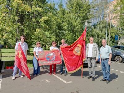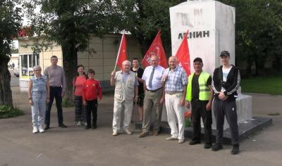 На одной из остановок возле памятника В.И. Ленину первый секретарь Пушкинского горкома КПРФ Трошин Д.В. сообщил о прошедшей 7 августа акции возле представительства Евросоюза в Москве. Акция была проведена по инициативе депутатов-коммунистов. На мероприятии коммунисты выступили против агрессии коллективного Запада, распространения фашизма и русофобии, выразили поддержку проведению СВО до полного достижения ее целей.