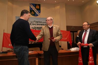 Встречу открыл Н.А. Кузьмин, секретарь Ленинградского областного отделения КПРФ, депутат фракции КПРФ в Законодательном собрании Ленинградской области. В начале встречи В.В. Бортко вручил партийные билеты недавно вступившим в партию товарищам.