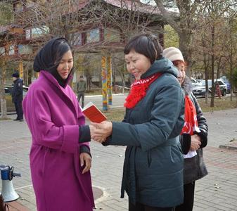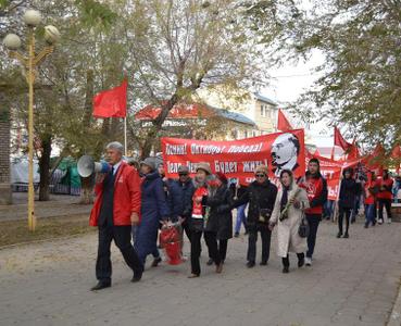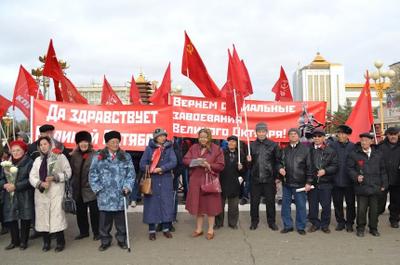 Колонна демонстрантов под красными знамёнами КПРФ прошествовала по главной площади столицы Калмыкии, по Аллее Героев. У подножия памятника вождю революции состоялся митинг, во время которого заведующая отделом организационно-партийной и кадровой работы КРО КПРФ Мигмир Бембеева огласила Обращение ЦК КПРФ «Время встать под знамёна Великого Октября!» и поздравление Калмыцкого регионального отделения партии.