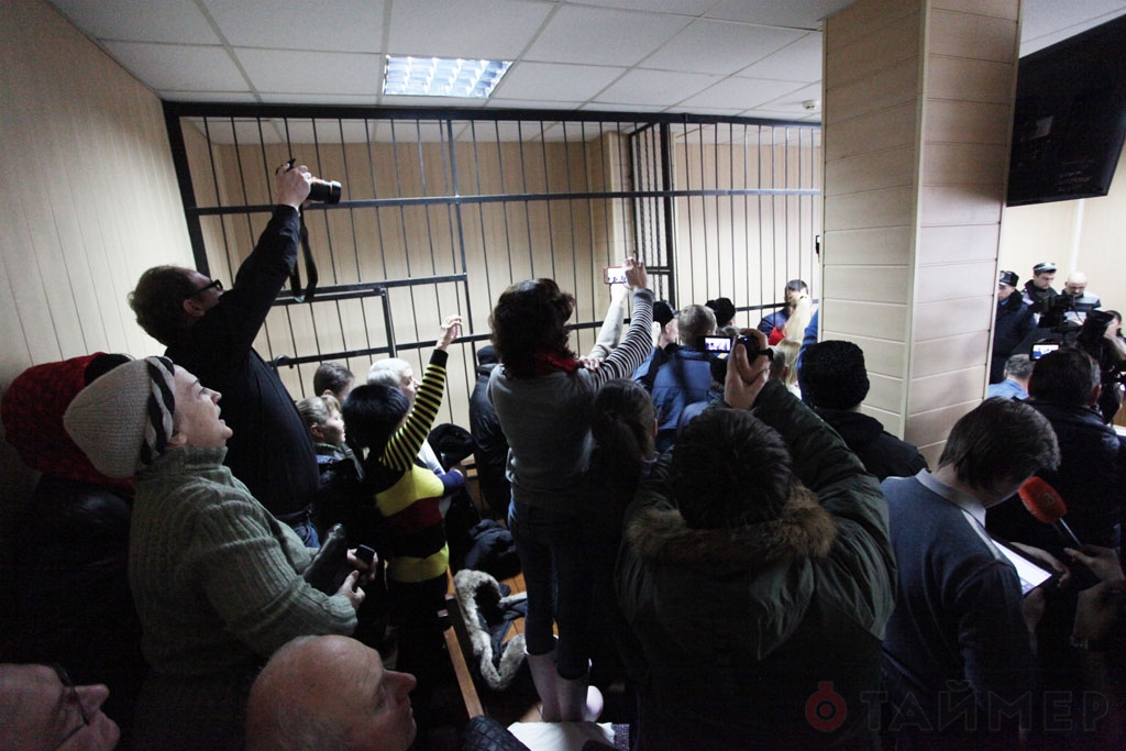 Людей значительно больше, чем может вместить зал суда. Прежде всего пропускают журналистов, родственников и депутатов, но и им в зал попасть непросто.