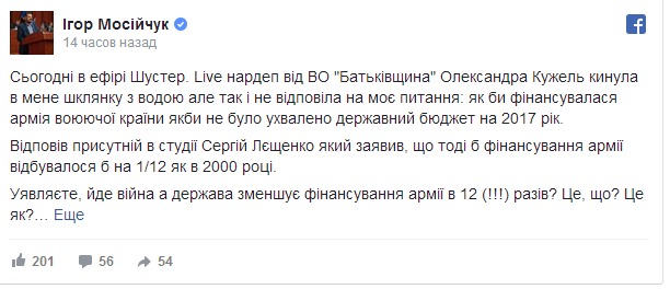 Кужель облила водой Мосийчука в прямом эфире