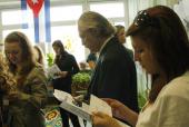 На днях в НТУУ "КПИ" состоялась интересная встреча между студентами факультета социологии и права и послом Республики Куба Феликсом Леоном Карбальей, который там открыл художественную выставку. Но обо всем по порядку.Начался визит посла дружественного государства с открытия в 7 корпусе НТУУ "КПИ" выставки портретов кубинских женщин-героинь. Автором этих 54 портретов является герой Кубы Антонио Герреро, который так же, как и четыре его товарища, сейчас отбывает незаконное заключение в одной из тюрем США. Борьба за освобождение этих пятерых кубинцев, боровшихся против терроризма, длится уже более 12 лет, с момента их ареста, и аналогов такой активной массовой борьбы за свободу политзаключенных в мире нет. Создано более 300 комитетов в 80 странах. Наиболее активные комитеты действуют в США, Бельгии, Италии, Испании, в странах Латинской Америки. Подробнее