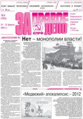 Скачать .pdf версию с Яндекс Народ Вышел в свет новый номер газеты Владимирского областного комитета КПРФ «За правое дело» - № 6 (18 – 24 февраля 2011 г.). Он посвящен политической борьбе в ходе выборной кампании.  ... Подробнее