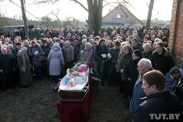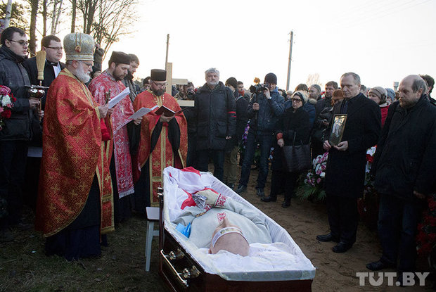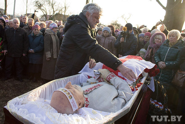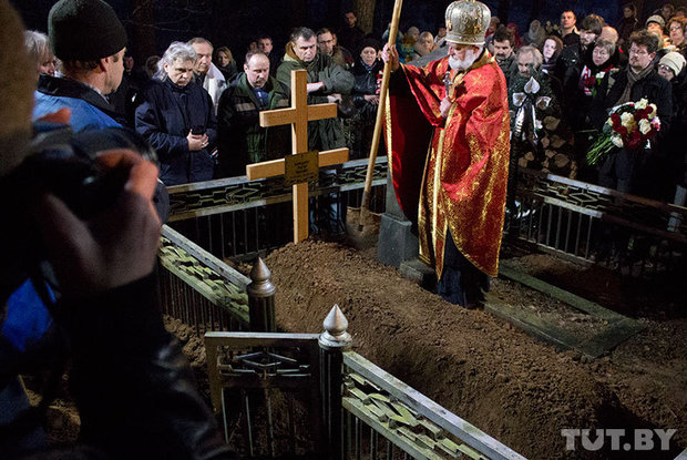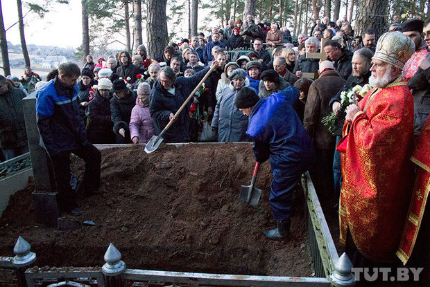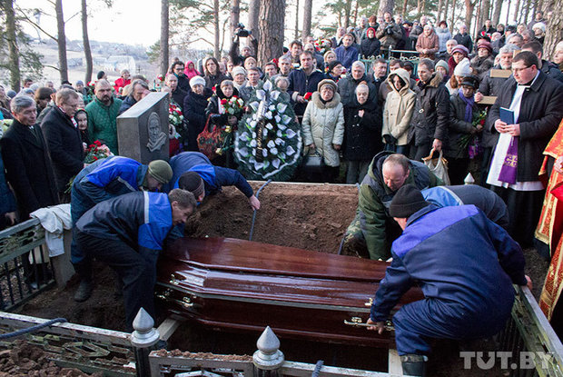 Калі труну апусцілі ў магілу і пачалі засыпаць яе зямлёй, людзі заспявалі гімн "Магутны Божа".
