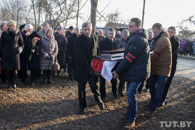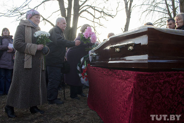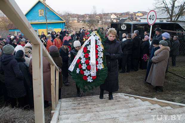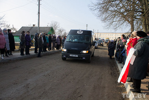 Жалобная працэсія едзе на могілкі, якія знаходзяцца прыкладна ў 2,5 км ад роднай хаты нябожчыка.