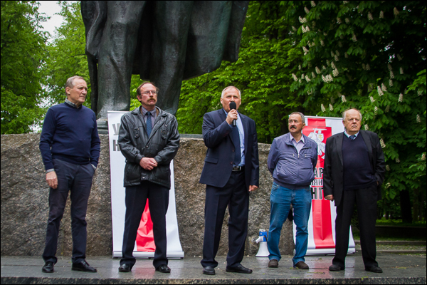 Огромный бронзовый Янка Купала с молчаливой грустью взирал на действо, развернувшееся у его ног. Сотня (некоторые насчитали больше) оппозиционеров, обложенных силовиками в форме и штатском, провела 15 мая под дождичком в столичном сквере имени великого поэта (БНК).