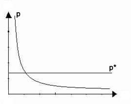 Такая ситуация возможна потому, что при снижении качества услуг, поставляемого действующей властью (кривая p, см. график ниже), выгоды от пользования предоставляемых ею услуг падают, в то время как выгоды от потенциального использования услуг иного поставщика (p*)растут.