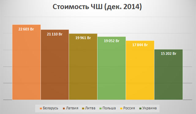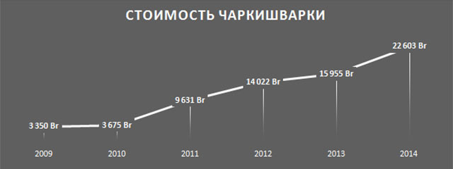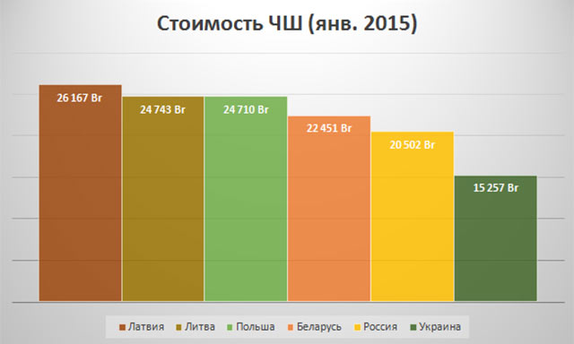 В результате девальвации белорусской валюты и дальнейшего обесценивания российского рубля в январе 2015 года стоимость «ЧаркаШкварки» в Беларуси составила 22 451 белорусский рубль, а в России — 20 502 рубля.