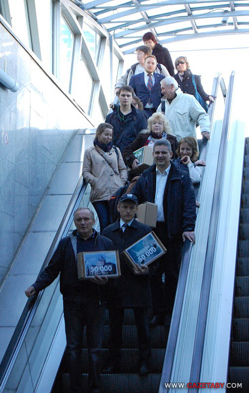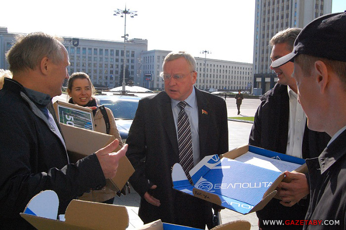 По дороге они встретили депутата Геннадия Пальчика. После вопроса Владимира Некляева «а вы ведаеце, што ў гэтых каробках?», тот опешил. Но поняв, что находится внутри, сказал, что подписи принять сейчас не может.