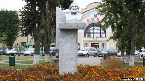 Помнік Карлу Марксу на прывакзальнай плошчы ў Лунінцы