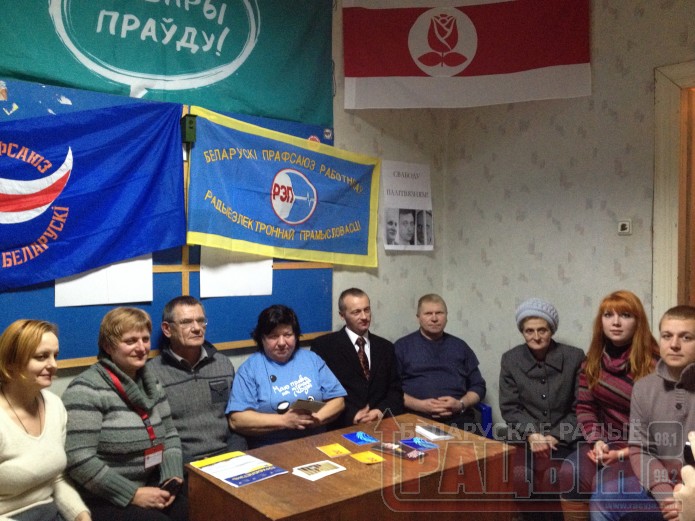 Прысутныя на "круглым стале" лідар абласнога Свабоднага прафсаюза Беларускага Валянцін Лазарэнкаў і кіраўнік філіі Беларускай асацыяцыі журналістаў Алег Супрунюк выдзелілі галоўныя накірункі ў працы па абароне правоў працоўных і журналістаў.