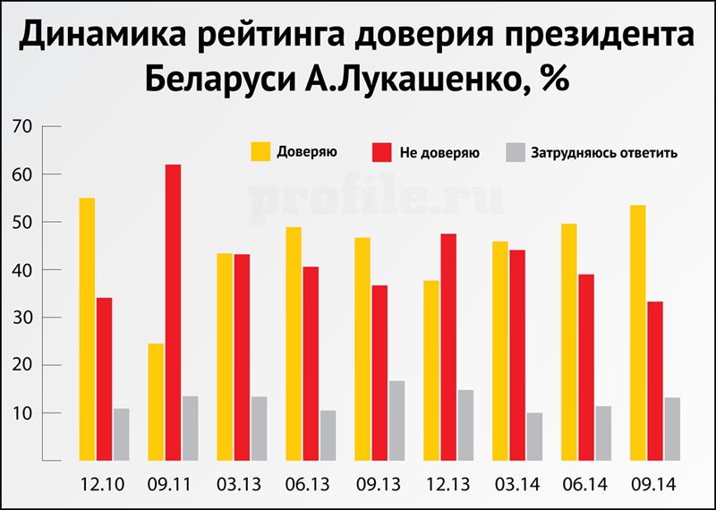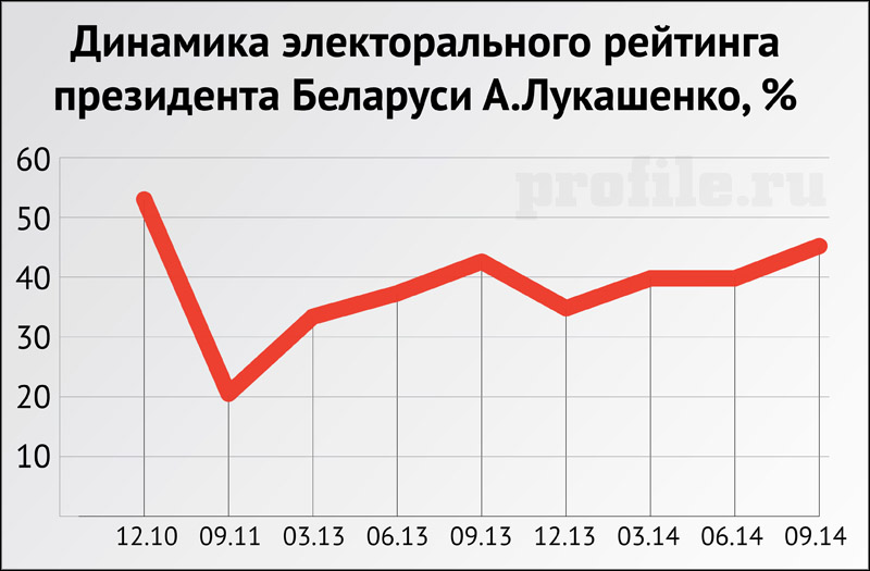 В сентябре этого года согласно анализу Независимого института социально-экономических и политических исследований (НИСЭПИ), электоральный рейтинг А. Лукашенко обновил четырехлетний максимум, составив 45,2%.