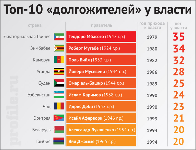 В Беларуси один и тот же человек правит страной вот уже больше 20 лет. Всего в восьми странах мира сейчас политический лидер находится у власти дольше, чем Александр Лукашенко.