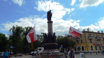 Прэс-служба абласной арганізацыі БСДП паведамляе, што ў гэты дзень актывісты распавядалі жыхарам і гасцям горада аб гісторыі гэтай даты, арганізавалі для ўсіх жадаючых фота з Пагоняй.