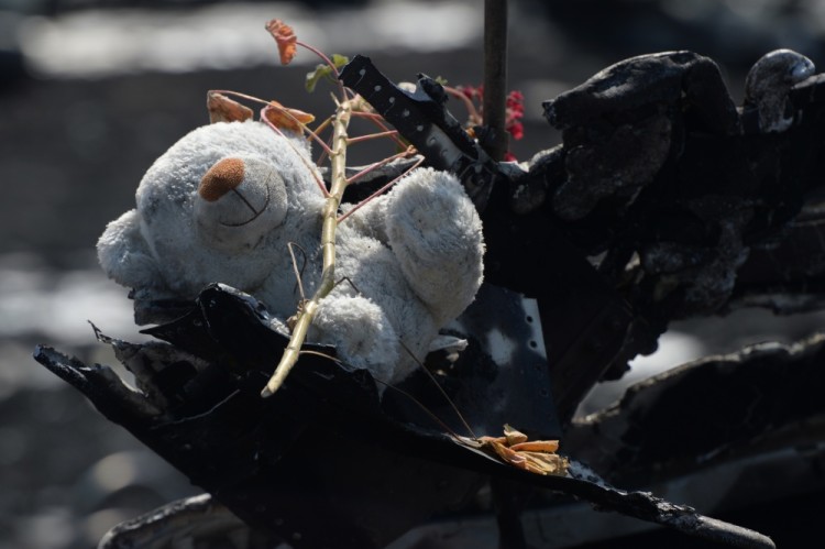 Детская игрушка среди обломков «боинга» Malaysian Airlines, сбитого в июле 2014 года над Донбассом. Фото RIA Novosti/Scanpix