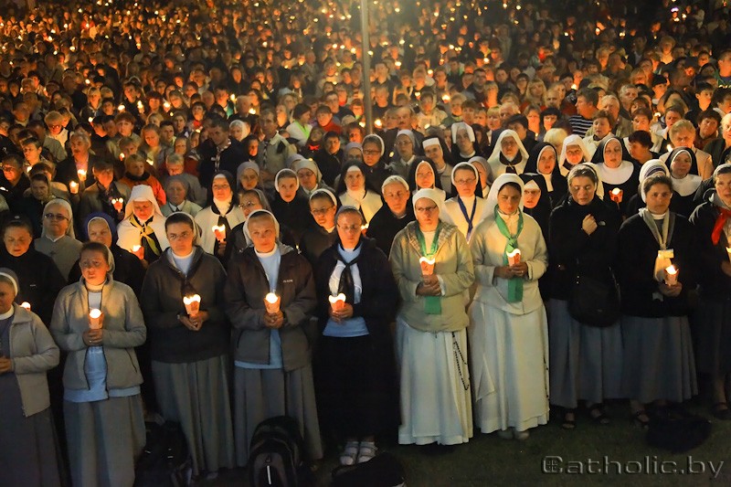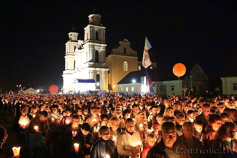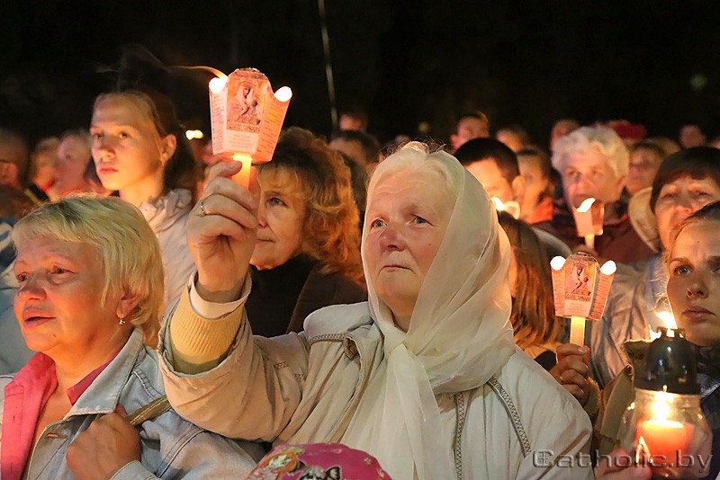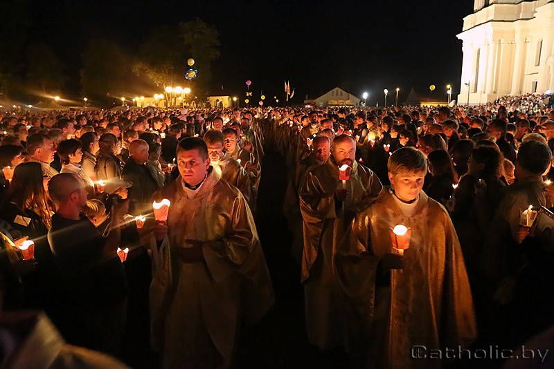 «Эксцэленцыі, гэта ваша святыня, ваш народ, вы заручаны з гэтым народам, і радуйцеся гэтаму святу! Дарагія святары, калі гэтыя людзі сёння тут, — гэта значыць, што хтосьці паклапаціўся пра іх. Законнікі і законніцы, вы — душа гэтага народа, якая моліцца, і яна перадалася народу ў малітве. І вы, дарагія браты і сёстры, якія напоўнілі сёння гэты пляц больш густа, чым зоркі на небе, — гляньце на святло вашых свечак, бо за кожнай з іх ёсць чыёсьці сэрца», — звярнуўся Апостальскі Нунцый да прысутных біскупаў, святароў, кансэкраваных асобаў і ўсіх вернікаў.