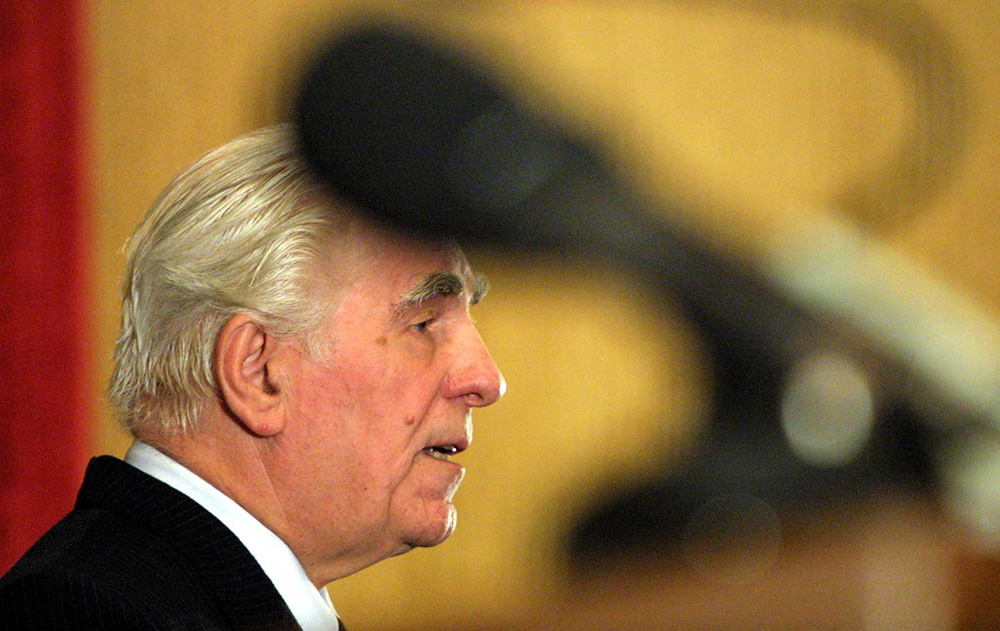 Ніл Гілевіч выступае на з'ездзе Саюза пісменнікаў Беларусі. Мінск, 2001 год. Фота: