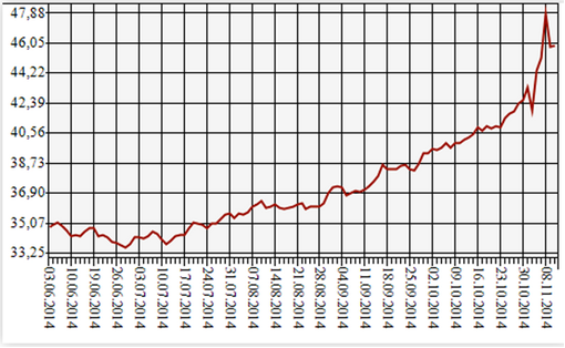 Российский рубль слабеет еще с лета текущего года, однако в последний месяц девальвация у соседей существенно ускорилась, достигнув своего пика к 8 ноября – в тот день курс российского рубля к доллару составил почти 48 рублей. Естественно, такие финты национальной валюты заставляют простого российского обывателя изрядно волноваться. Отвыкшие от валютных потрясений, измеряющие родным российским рублем цены на всё и вся, начиная от квартир заканчивая туристическими путевками, люди пребывают в недоумении. Что делать? Пока не поздно, переводить сбережения в доллары, или наоборот – срочно менять всё на рубли по такому привлекательному курсу, ведь чуть позже жизнь наладится?