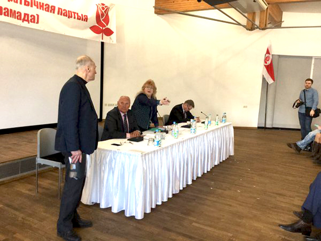 "В конце октября минувшего года был создан теневой оргкомитет по реформированию партии. Неформальная структура начала действовать в обход партийного руководства. Но все тайное становится явным. От того, что вы создали этот оргкомитет, все проблемы в нашей партии. Когда в демократическом сообществе поняли сущность Народного референдума, то начали от него открещиваться. Псевдооппозия позволила Лукашенко лигитимизировать режим на последних выборах.