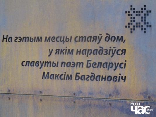 Месца, дзе некалі стаяў дом Максіма Багдановіча, пазначылі памятным знакам. Замест адноўленага гістарычнага будынку — тэхналагічная пабудова для забеспячэння пажарнага выхаду з падземнай стаянкі 23-павярховага гмаху.