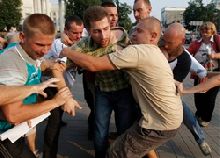 В то же время задержания начались еще до начала акции. Вчера около шести часов вечера на выходе из станции метро «Академия наук» сотрудниками КГБ и спецназа были задержаны активисты «Молодых демократов» Олег Корбан и Сергей Клюев, а так же еще с десяток молодых людей. Некоторые из них были отпущены через 10 минут, остальные провели в опорном пункте около полутора часов.