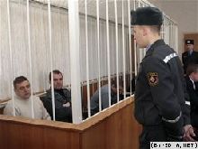 10.30 У судовай зале забаранілі фота- і відэаздымку. На лаве падсудных акрамя Аўтуховіча і Асіпенкі, знаходзіцца жыхар Ваўкавыску Аляксандар Ларын і былы маёр міліцыі Міхаіл Казлоў. На самым пачатку паседжаньня Аляксандар Ларын выказаўся супраць здымак. Фотакарэспандэнтаў і здымачныя групы выдалілі з залі.