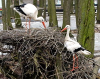 В Витебском городском зоопарке пара белых аистов сооружает гнездо для своего потомства на земле. Как сообщил БелаПАН методист зоопарка Сергей Орлов, для аистов это достаточно редкий тип гнездования.