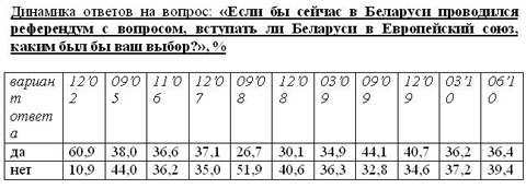 К тому же вопрос именно об объединении, а не союзе, например, позволяет оценить вектор соответствующего геополитического выбора, готовность к изменениям в данном направлении. Союз с Россией — слишком широкое понятие, Беларусь и сейчас находится в союзе с ней, в конечном счете союзом с Россией является и СНГ. Вопрос же об объединении больше подходит для определения именно выбора.
