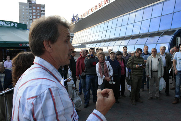 19.45 Выступления продолжаются. Собралось около 70 человек, чуть поодаль – группки граждан, которые с интересом прислушиваются к тому, что происходит. Прохожие, идущие в магазин, живо разбирают листовки с обращением спикеров ОГП и газету «Народная Воля».