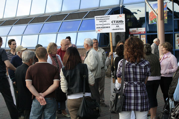 У ТЦ «Рига» в Минске прошел пикет «За честные выборы без «Лукашенко»!». В нем приняли участие спикеры ОГП Анатолий Лебедько, Станислав Богданкевич, Владимир Романовский, Николай Козлов, Анна Канопацкая, Нина Коледа.