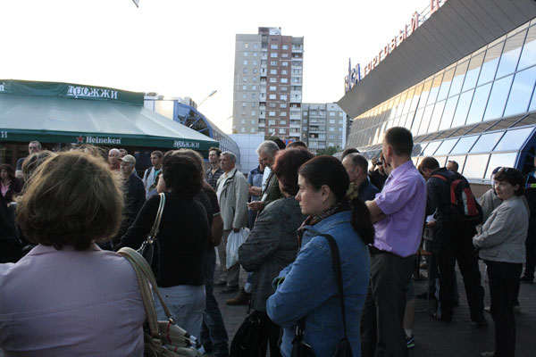 20.05 Люди окружили спикеров, задают вопросы. Образовались группки по интересам. Особое внимание к Богданкевичу.