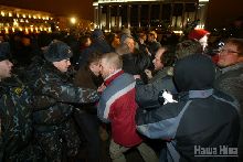 Несмотря на разговоры о либерализации, ходить на мирные акции в костюме и галстуке пока явно рано», – отметил Анатолий Лебедько. Акция солидарности с арестованными предпринимателями, инициированная бывшими политзаключёнными, прошла сегодня на Октябрьской площади столицы и была грубо разогнана спецназом.