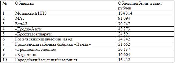 Самое прибыльное ОАО по итогам 2009 года – российско-белорусское СП «Брестгазоаппарат» — заняло 5-е место.