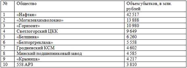 Отметим попадание в топ убыточных ОАО «Крыницы»— крупнейшего белорусского пивовара (кстати, и «Белсолод» закончил I квартал 2010 года с убытками).