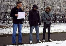 Члена бюро движения Владимира Милова задержали, когда он уже передал плакат другому участнику "Солидарности". На замечание Билунова о том, что одиночный пикет не требует согласования, задержавшие его милиционеры ответили, что не знакомы с такой законодательной нормой. У задержанных, а также журналистов и фотографов, освещавших одиночный пикет, сотрудники милиции переписали паспортные данные.